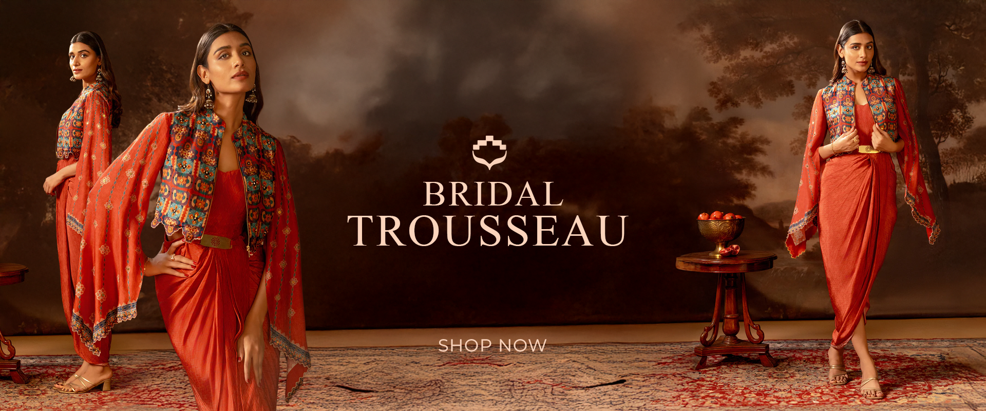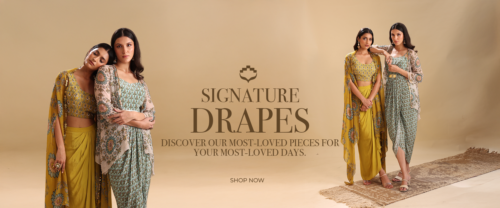 Flowing through fabrics like crepe, organza, and chanderi, Taarani embraces fluidity while elevating festive dressing with intricate artistry and refined elegance. Each silhouette is a modern interpretation of tradition, designed for the woman who seeks soulful luxury with effortless poise.